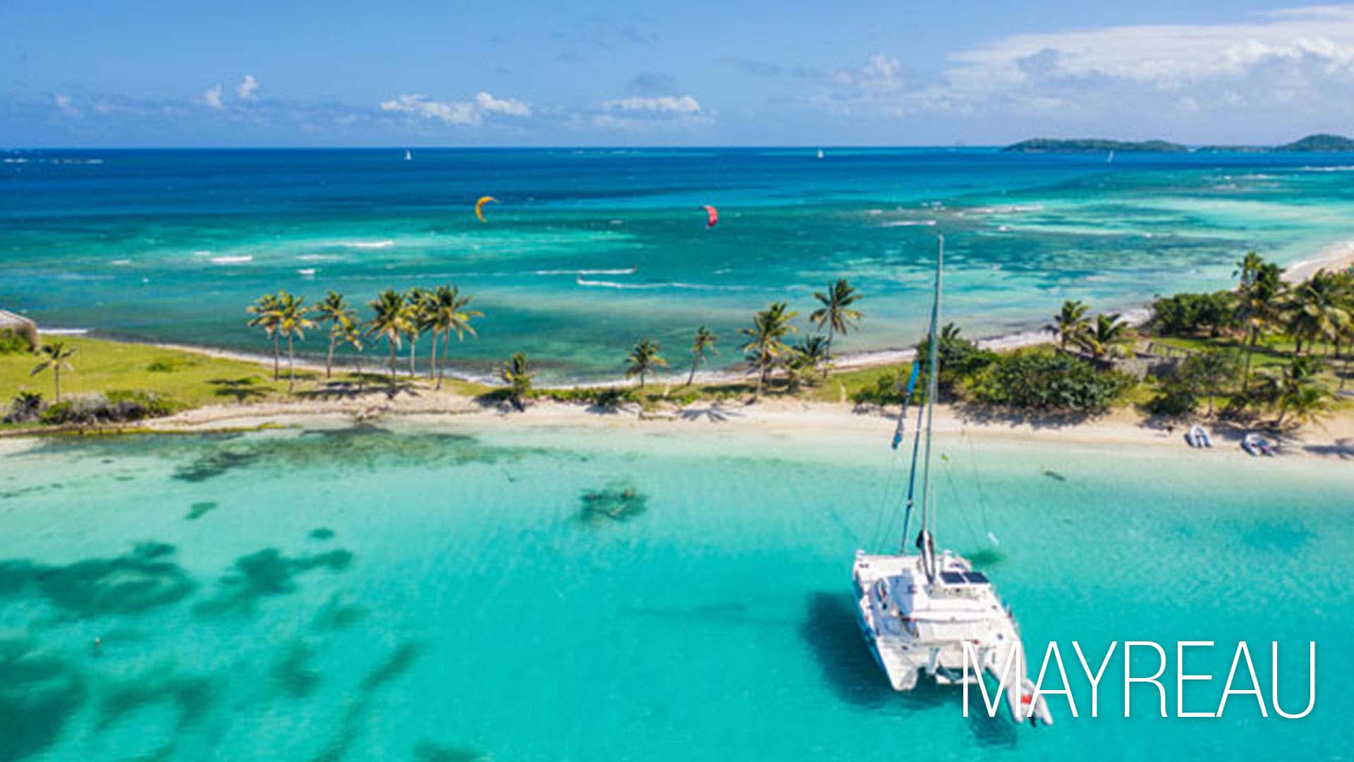 Mopion Island emerges as a little paradise: a tiny sandbank nestled in the heart of a flat turquoise lagoon and coral reefs. With only one parasol to offer shade, it embodies the quintessential image of an escape to a deserted island. Within the lagoon, kitesurfing is reserved for expert kiteboarders navigating in challenging conditions, while intermediate riders can depart from the catamaran and explore the waters beyond the coral reef. At the end of the day, drink a sunset cocktail on the neighboring island of Petit St Vincent, completing the idyllic island experience.