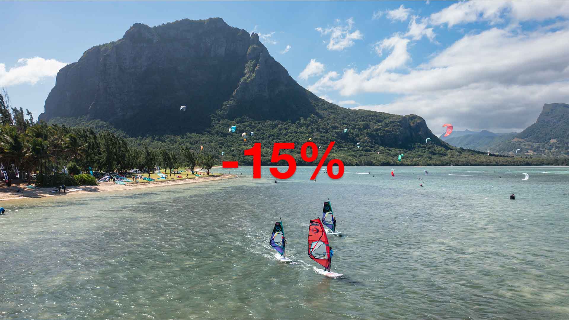 Immerse yourself in the kitesurfing, wingfoiling, or windsurfing experience under the sun and in the crystal-clear, paradise-like waters of Mauritius, while enjoying the comfort of accommodation at the St. Regis or the RIU.