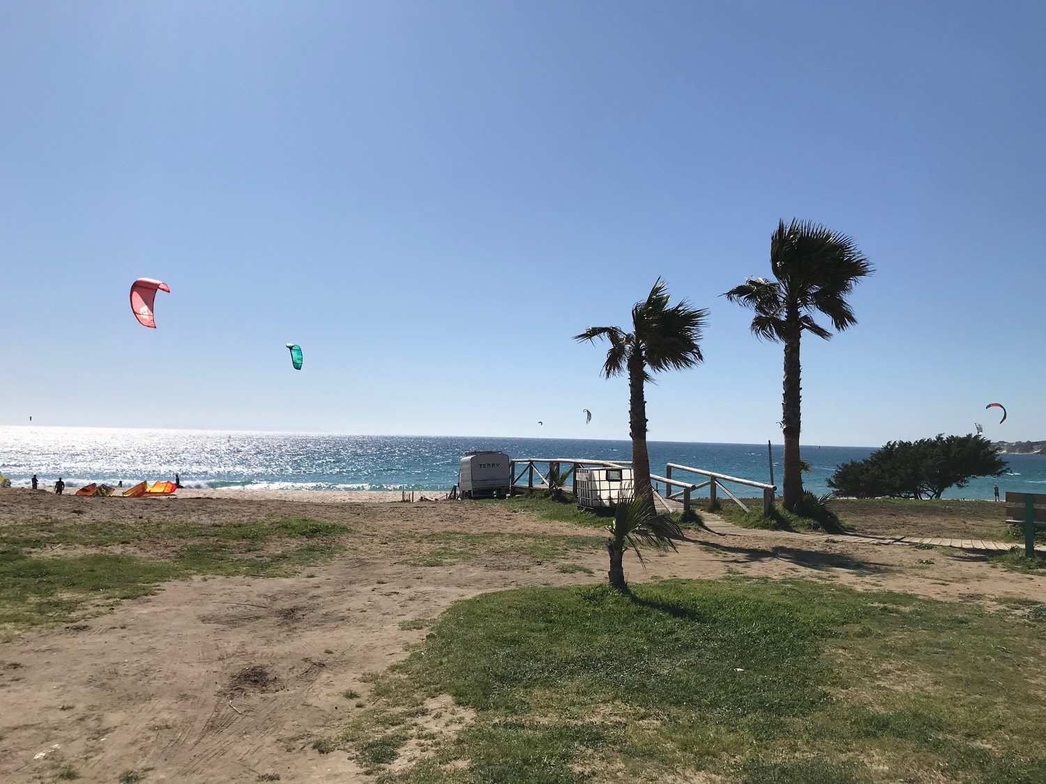Pass Facinas. About 1 km before Tarifa, just after ZERO 9, turn right to the beach parking. - From Malaga Airport (1h45):