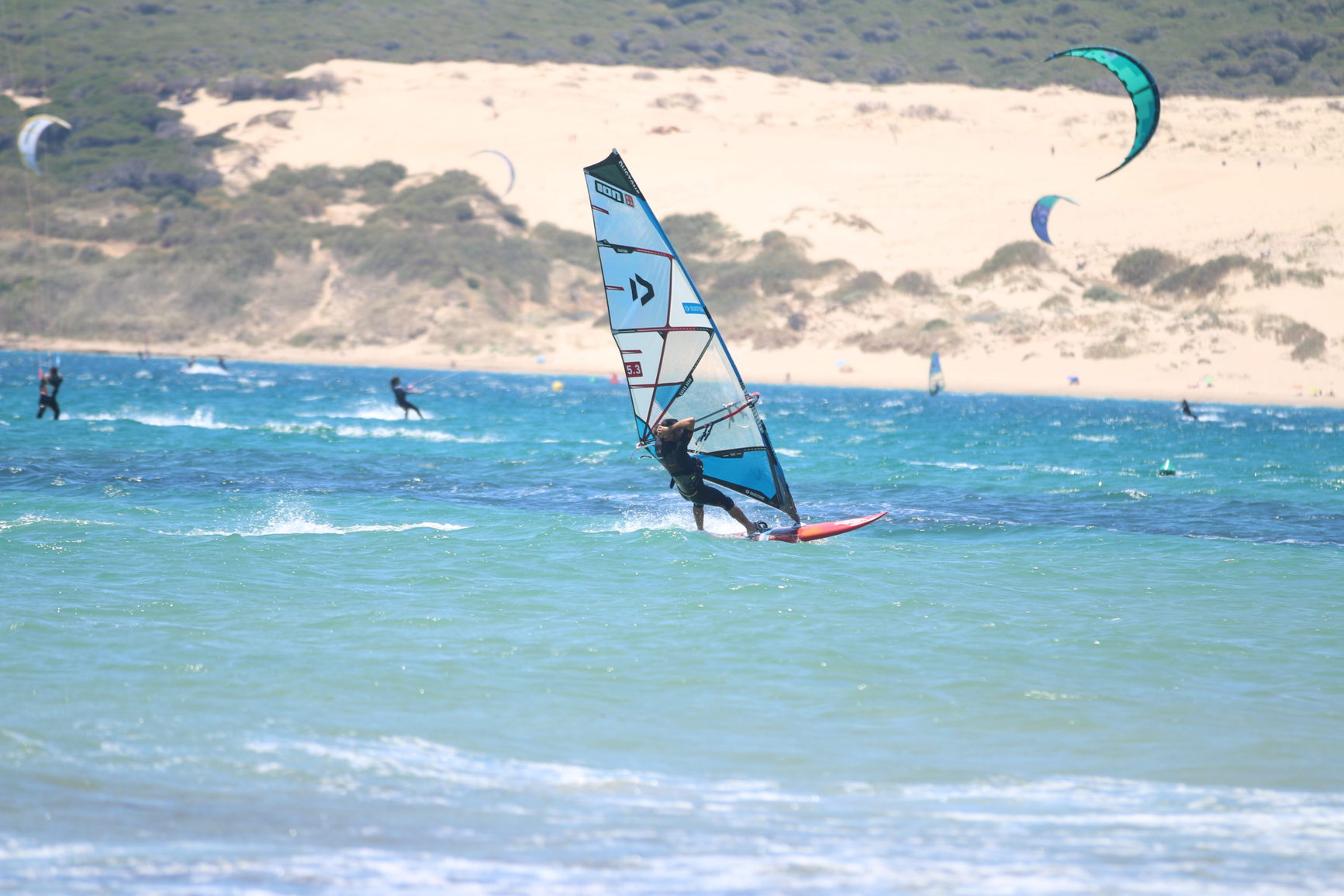ION CLUB Tarifa center is located right in front of the spot, not too far from the huge Dune amidst lush vegetation and on a beautiful sandy beach. Due to the protected bay, all levels can be taught depending upon the wind force. The bay also offers a safe spot in strong Levante days as you will be drifting towards the dune in case of something happens. The shorebreak can be challenging in Autumn with onshore wind (Poniente). Beginners tuition depends on the wind conditions and cannot be guaranteed. There is no disputing the fact that our ION CLUB Valdevaqueros is one of the best windsurfing and kitesurfing spot in Tarifa.